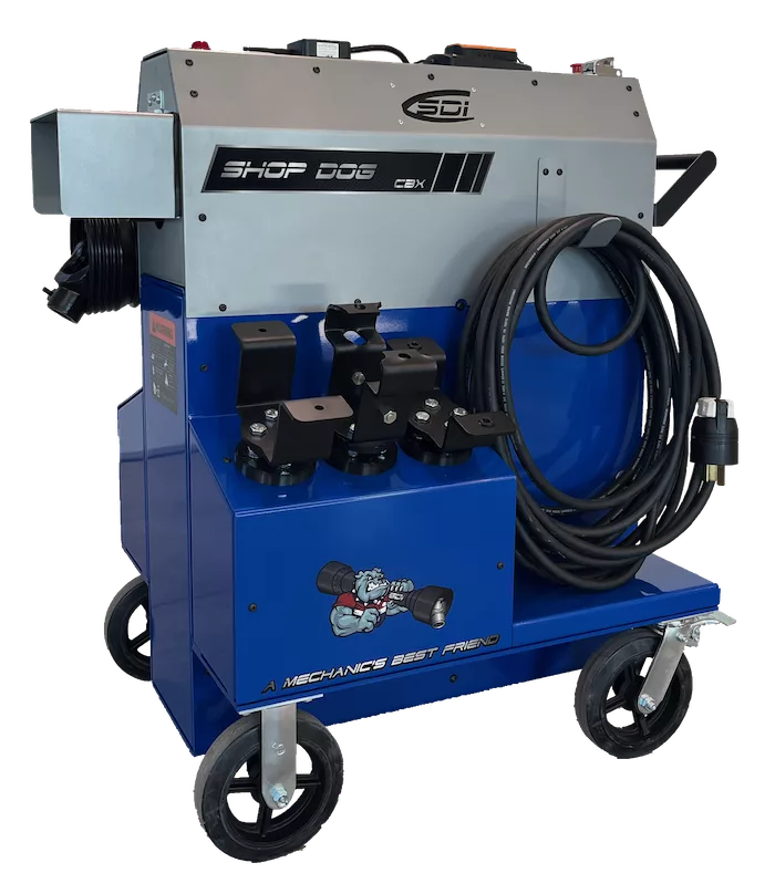 The Shop Dog CBX is a specialized power unit designed to enhance the servicing and inspection of John Deere X9 and S-Series Combines at dealerships, eliminating the need for a tractor while providing reliable, low-noise operation.